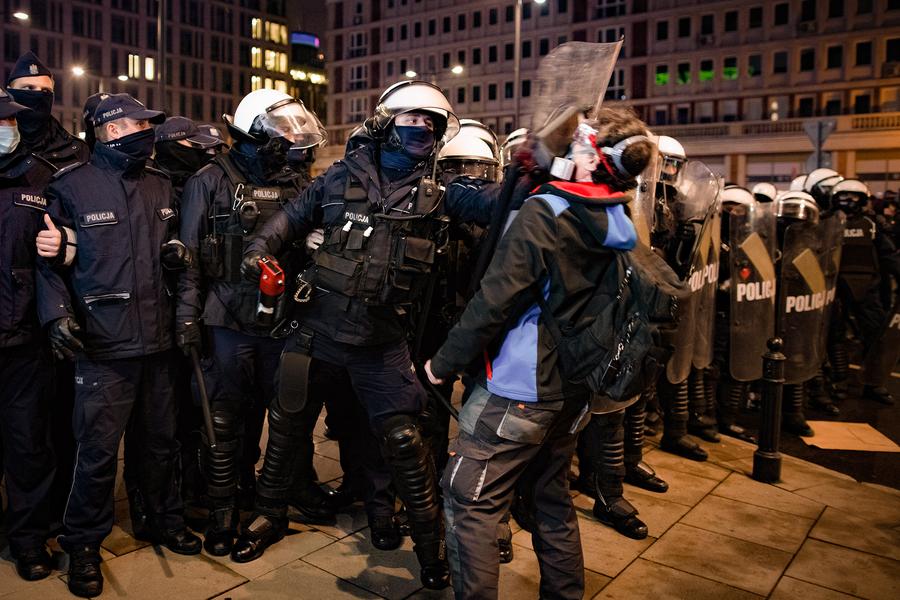 Nina michnik, a polish student of arabic studies and philosophy shows her arm with the phone number of a legal counselor written on in warsaw, poland, saturday, nov.